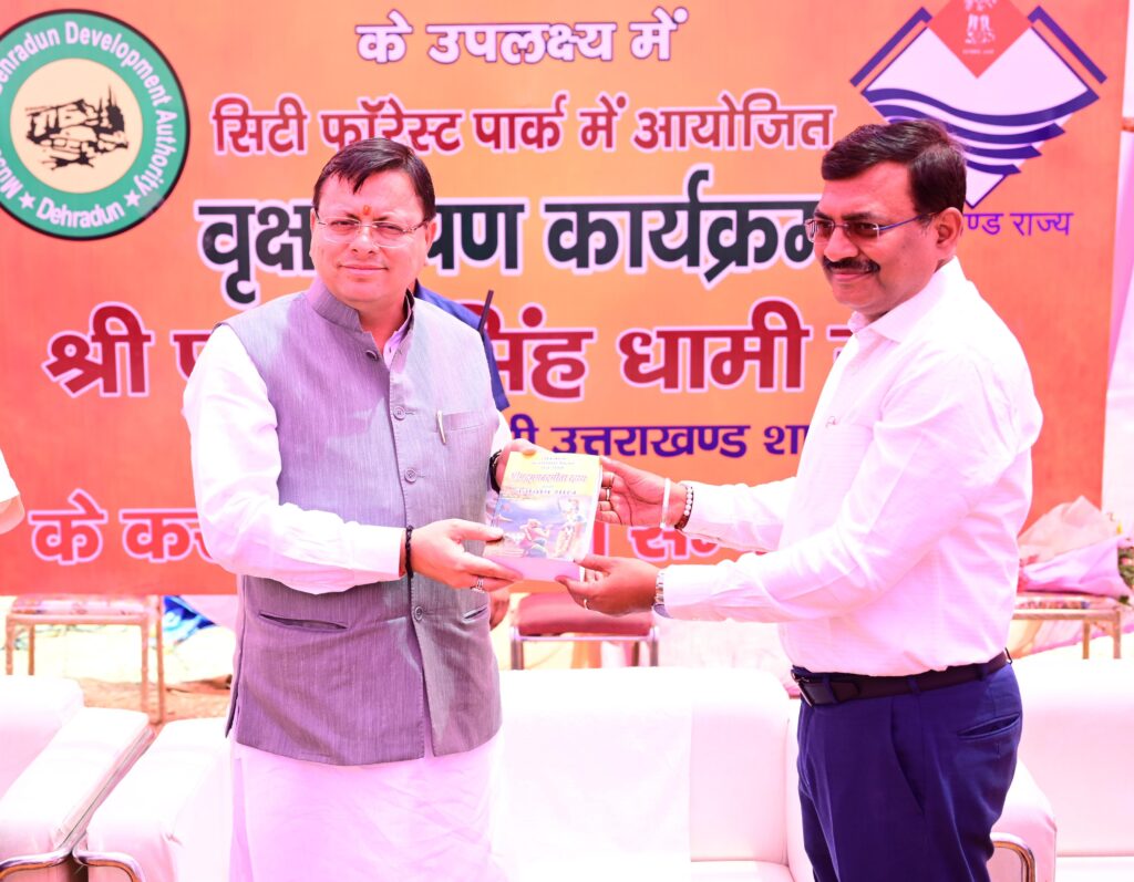 मुख्यमंत्री श्री पुष्कर सिंह धामी ने विश्व पर्यावरण दिवस के अवसर पर सहस्त्रधारा हेलीपैड के निकट सिटी पार्क में आयोजित वृक्षारोपण कार्यक्रम में प्रतिभाग कर वृक्षारोपण किया। वृक्षारोपण कार्यक्रम के तहत अनेक प्रजाति के पौधे लगाये गये।