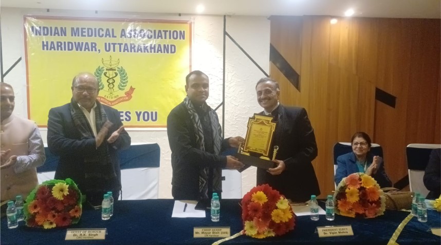 इस अवसर पर संस्था के नवनिर्वाचित महामंत्री डॉक्टर प्रेम लूथरा ने सभी अतिथियों का आभार जताया। इंडियन मेडिकल एसोसिएशन हरिद्वार इकाई के अध्यक्ष डॉ विपिन मेहरा ने मुख्य अतिथि जिलाधिकारी मयूर दीक्षित को स्मृति चिन्ह भेंटकर सम्मानित किया। डॉक्टर लूथरा ने विशिष्ट अतिथि मुख्य चिकित्सा अधिकारी डॉक्टर राजेश सिंह को स्मृति चिह्न भेंट कर सम्मानित किया।
