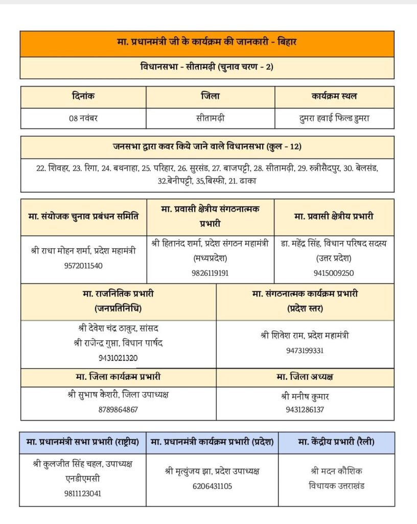 बिहार में होने वाले विधानसभा चुनाव के लिए भाजपा केंद्रीय नेतृत्व ने उत्तराखंड भाजपा के पूर्व प्रदेश अध्यक्ष और हरिद्वार विधायक मदन कौशिक को प्रधानमंत्री की रैली का प्रभारी बनाया है। इस रैली से प्रधानमंत्री 12 विधानसभाओं के मतदाताओं को साधने का काम करेंगे। गौरतलब है कि पूर्व में भी विधायक मदन कौशिक पार्टी नेतृत्व के निर्देश पर गुजरात हरियाणा उत्तर प्रदेश दिल्ली और उड़ीसा जैसे राज्यों में चुनाव प्रचार की कमान संभाल चुके हैं। हरिद्वार में वो लगातार पांचवीं बार विधायक हैं। उनके चुनावी मैनेजमेंट और रणनीति के पार्टी के बड़े नेता भी कायल हैं। उनके पास चुनाव लड़ने और लड़वाने का पिछले ढाई दशकों का एक लंबा अनुभव है। लिहाजा इस बार भी जब बिहार में चुनाव प्रचार चरम पर चल रहा है तो पार्टी के रणनीतिकारों ने विधायक मदन कौशिक पर भरोसा जताया है।